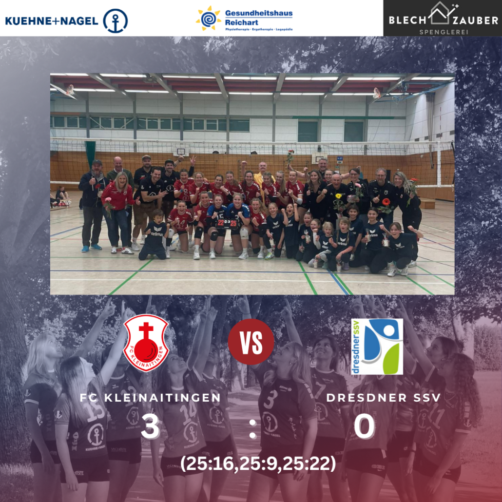 Beim Stand von 23:17 schien der Sieg bereits greifbar, doch Dresden gab sich nicht geschlagen. Es folgte eine intensive Schlussphase mit langen Ballwechseln und sehenswerten Abwehraktionen auf beiden Seiten. Am Ende bewies Kleinaitingen jedoch den längeren Atem und machte mit dem 25:22 den perfekten Abend und den 3:0-Sieg klar.